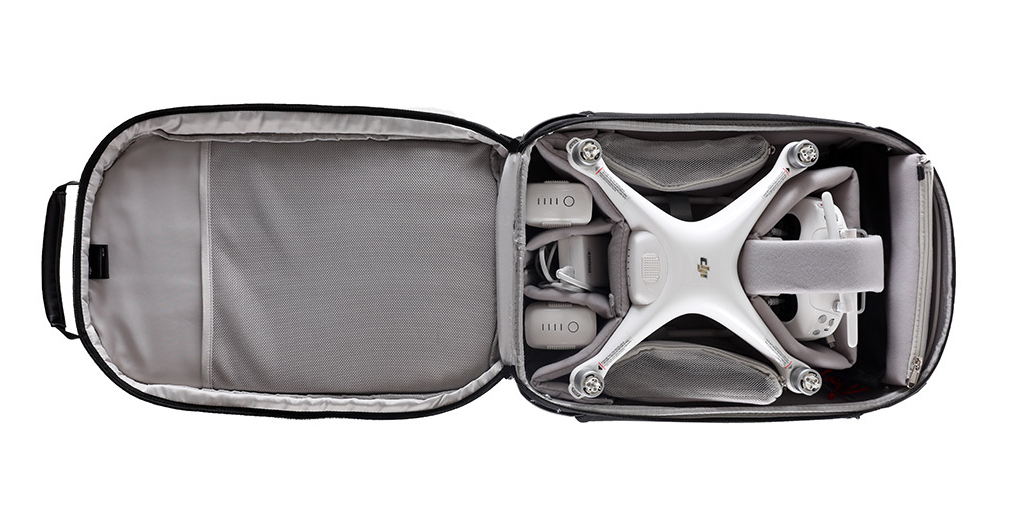 Protege bien tu Phantom 4 o Phantom 4 Pro con esta estupenda mochila con multitud de bolsos para que no te olvides de nada.
