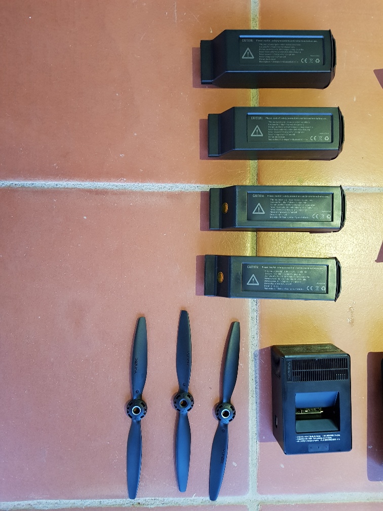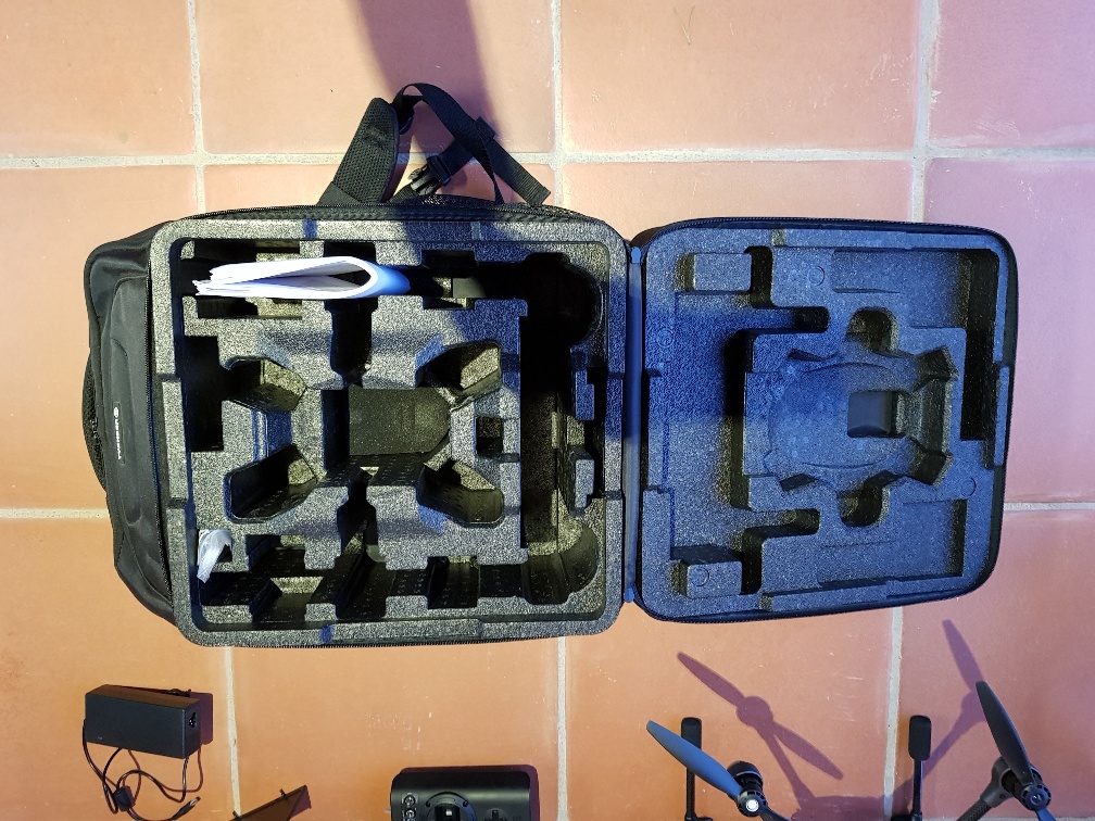 Además te llevarás todo lo que se ven en las imágnenes como por ejemplo la cámara, protector de pantalla, repuesto de hélices, mochila, cargador de red y de coche